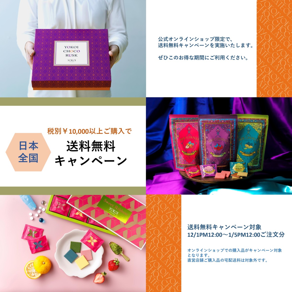 この度税別10,000円以上ご購入いただいた方を対象に、期間限定で公式オンラインショップ送料無料キャンペーンを実施いたします。